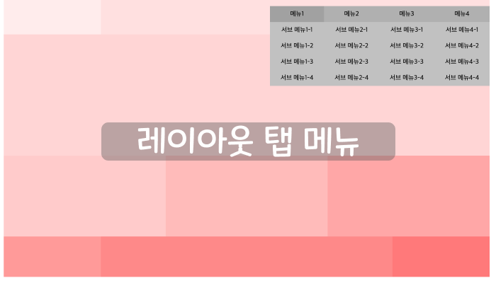 큰 메뉴를 하나씩 선택할 때 마다 서브메뉴들이 모두 다 나오는 탭메뉴입니다.